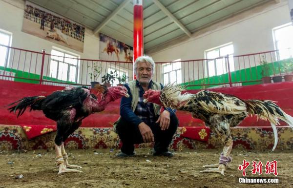 61岁的司马义·伊热依木是新疆吐鲁番人,他饲养斗鸡的场所在吐鲁番市高昌区亚尔镇克孜勒吐尔社区的一处农家大院,院内摆放着数十个鸡笼,旁边的几间平房是他与斗鸡长年吃住在一起的地方。司马义·伊热依木纵横斗鸡界41年,家族三代都从事斗鸡这一行业,他的斗鸡在新疆阿克苏、喀什、和田等地摘金夺银,2009年曾荣获“斗鸡王”称号。吾尔开西·加帕尔 摄