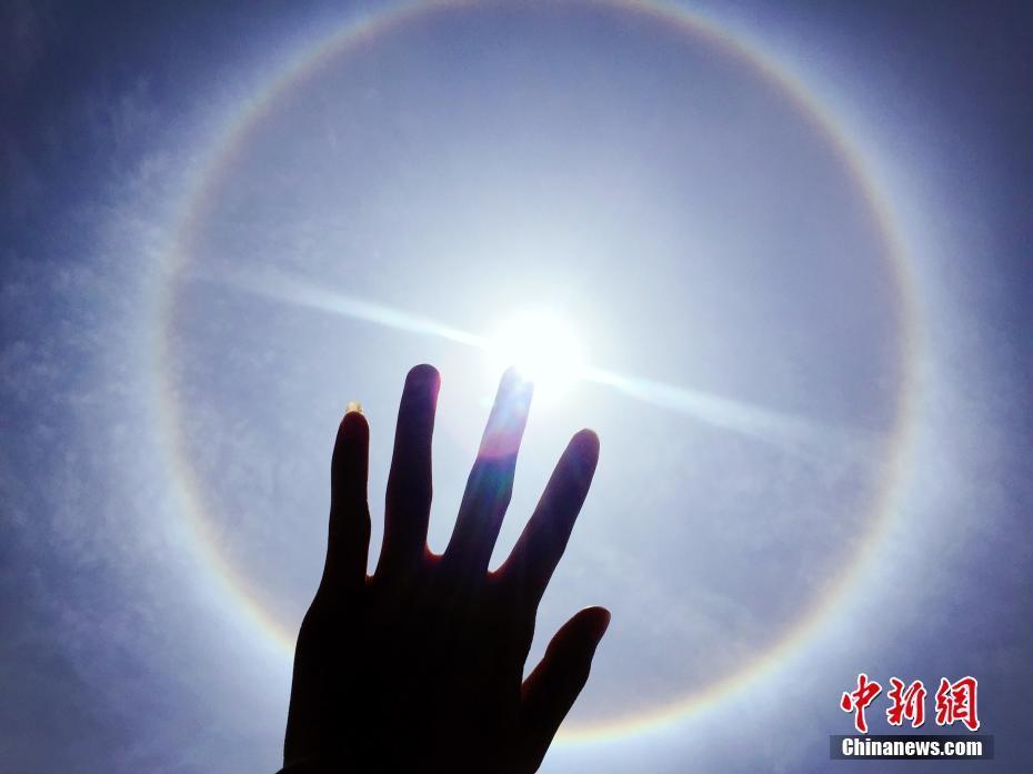 贵州多地日晕景象。日晕多出现在春夏季节。民间有“日晕三更雨,月晕午时风”的谚语,真实情况是,日晕的存在是与当时的天气条件有关系,这种现象与未来天气没有必然联系,未来的天气情况还需要进行天气分析,做出科学的判断。蒲文思/文吴永红/摄