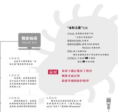 黄海涛说,此次“永恒之蓝”事件和以往大不相同的是,以往的勒索软件都需要受害者点击邮件附件,或者访问带毒网页才能触发。而“永恒之蓝”则采用了美国国家安全局泄漏的蠕虫工具进行传播,“不需要受害者任何动作,就可以主动传播和触发”,传播速度更快,破坏性更大,范围更广。