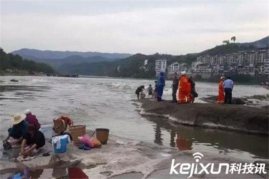 事发时,11岁小女孩一脚踩滑,当即跌入河中。母亲见孩子落水,连忙冲向河里,跳入水中一把拉住小孩。可落水现场附近河段水流湍急,紧紧抱在一起的母女俩被河水冲向下游,母亲的姐姐和目击群众立即大声呼救。图为事发现场,大批救援力量和群众赶到。