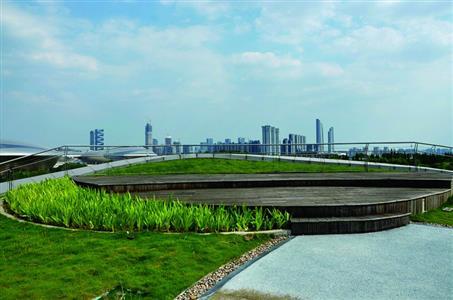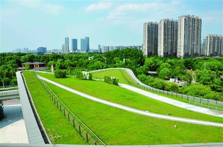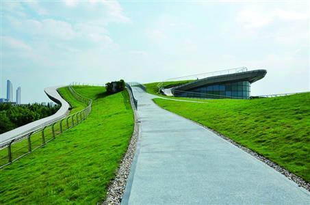 河西紫金文创园是一座绿色屋顶的文创园。屋顶公园的设计美观大气,郁郁葱葱的绿色植被把整个屋顶覆盖,几条弯曲的行人观赏道路像巨龙一样盘踞屋顶,可与新加坡绿色屋顶的艺术教学楼媲美。
