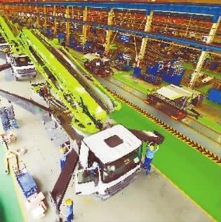 ② 5月15日,中联重科麓谷工业园,一批高精高效56米混凝土泵车在装配车间即将下线。湖南日报记者 田超 摄
