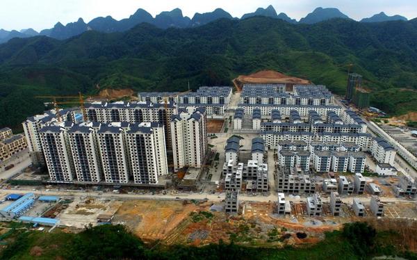 广西大化瑶族自治县用于脱贫移民搬迁的生态民族新城(2016年5月28日摄)。“十三五”期间,广西将实施易地扶贫搬迁100万人。