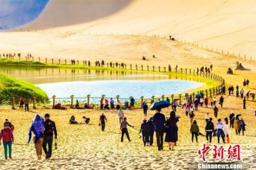 图为络绎不绝的游客前往月牙泉观光游览。 王斌银 摄