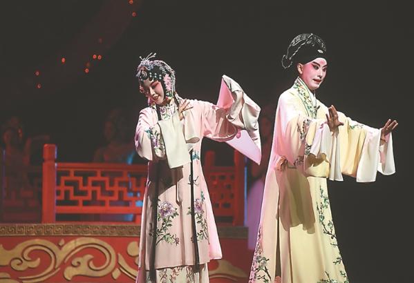 乡愁难解,何不用故乡的音乐一浇块垒?晚会导演邢时苗让京剧《贵妃醉酒》和昆曲《牡丹亭》换上新韵重试啼声。舞台上,李亦洁和吴汝俊一唱一和,古典戏服与现代服饰的结合,给观众带来别样的审美感受。当观众的思绪还沉浸在昆腔京韵中,《二泉映月》的前奏悄然响起,映着投影纱上的月中舞者。视频舞蹈和真人舞蹈交相辉映,意象化的舞蹈语言伴着如怨如诉的二胡声,将阿炳的满腔心事演绎得百转千回,小提琴的加入又为民族化的表达增加了更多现代的色彩。台下的嘉宾早已如痴如醉,任半个多世纪前的这位无锡老乡的愁绪拨动自己的心弦……