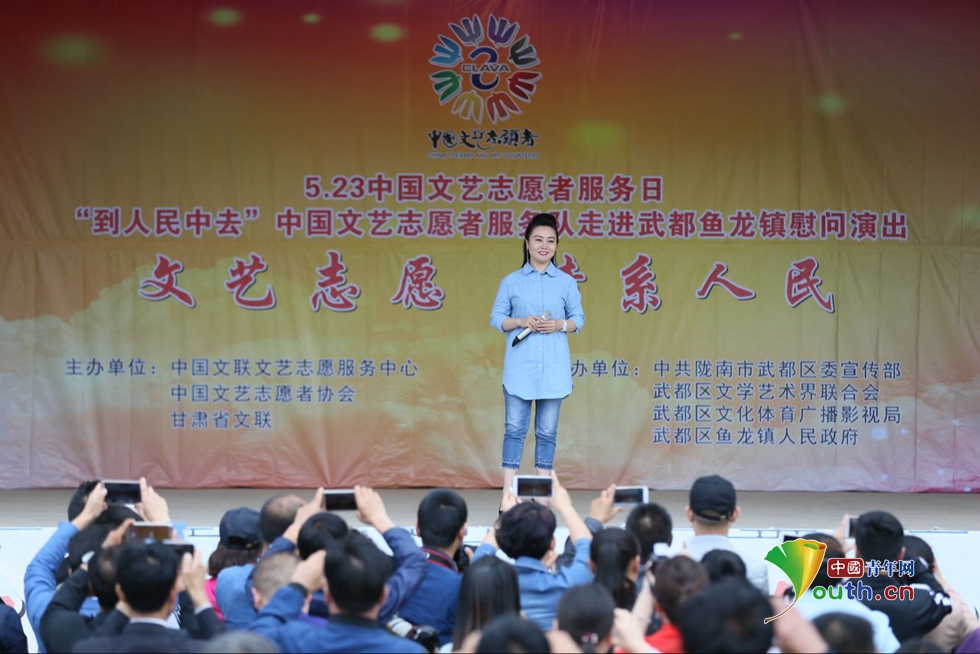 中国青年网北京5月22日电(记者 杨青山)为认真贯彻党的十八大和十八届三中、四中、五中、六中全会精神,深入学习贯彻习近平总书记全国文艺工作座谈会和中国文联十大、中国作协九大会议上的重要讲话精神,中国文联和中国文艺志愿者协会组织开展“到人民中去”文艺志愿活动,分别组织了6只小分队深入到各地。其中歌剧艺术家孙丽英带队的小分队深入到甘肃省陇南市武都区鱼龙镇上尹村。