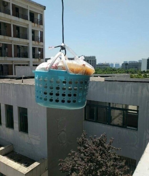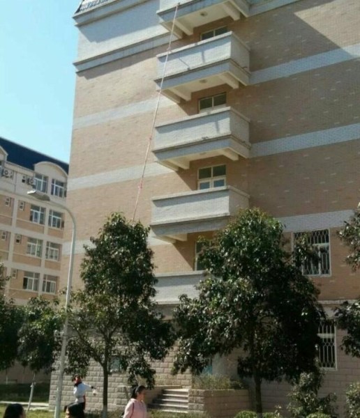 放置完毕,小哥提醒女生可以往上拉绳索了。