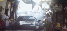 没想到男司机直接上车就撞上去,旁边的人制止都来不及