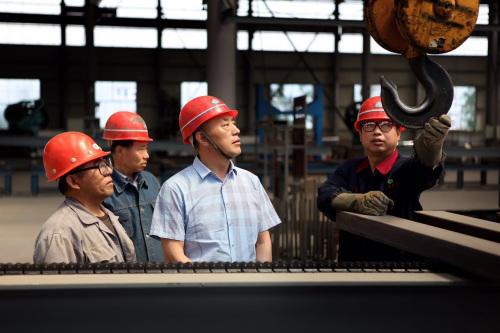 柴英在生产车间检查设备生产情况 摄影:付维超