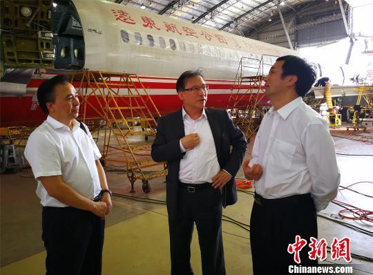 张家界市代表团参观台湾远东航空公司,协商开通直航事宜。 王建军 摄