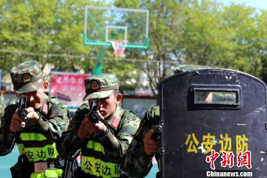 图为新疆阿勒泰公安边防支队吉木乃大队官兵正在进行对手持警械基本功训练。 王友波 摄