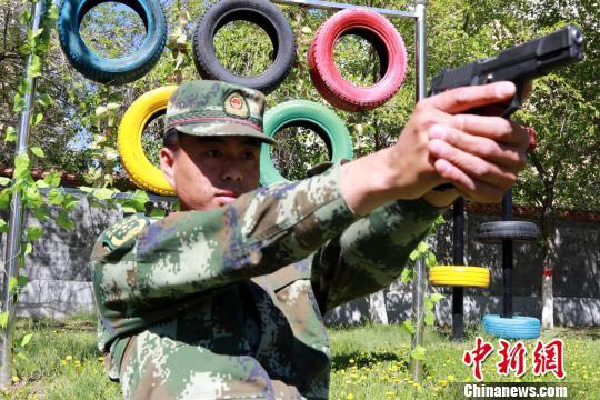 图为官兵正在进行快速出枪射击训练。 王友波 摄