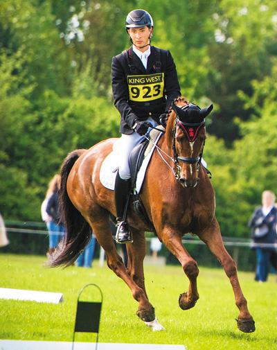 5月21日,中国骑手华天与他的奥运战马“堂·热内卢”参加了英国罗金汉姆城堡国际马术三项赛一日赛,位列总成绩13位。图为华天在盛装舞步比赛中。