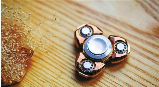 这种名为指尖陀螺的减压玩具,是一种依靠轴承可以在手指上旋转的手上玩物。起初出现时多为两叶,玩家用双指按住中间轴承部分,轻拨叶片,陀螺就会旋转起来。现在市面上还出现了三叶、多叶指尖陀螺。