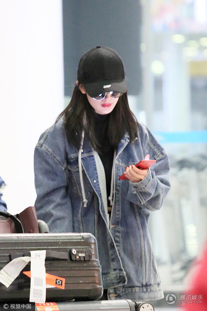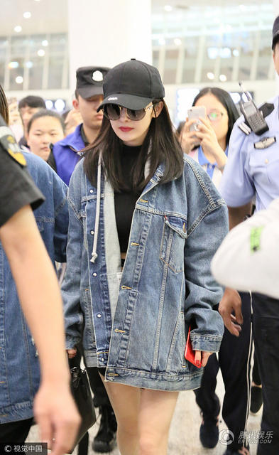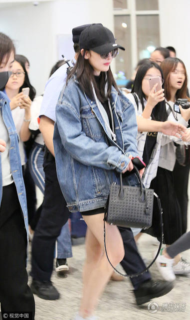杨幂现身机场。