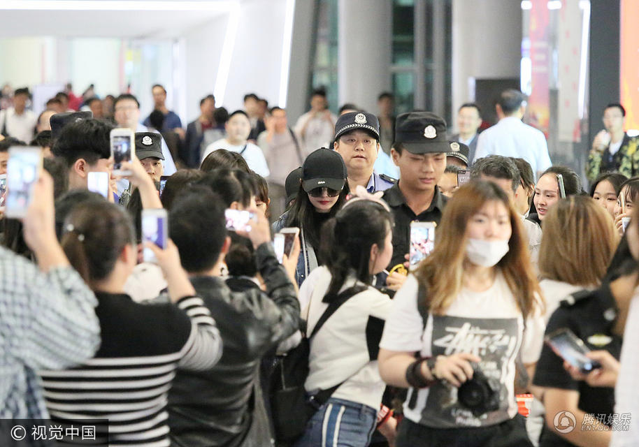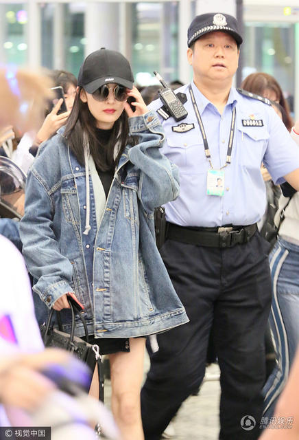视觉中国讯 近日,杨幂抵达深圳宝安机场,一出闸即被近百粉丝围堵,寸步难行的她获安保队长亲自护送,走在中间的杨幂一路低头不语。