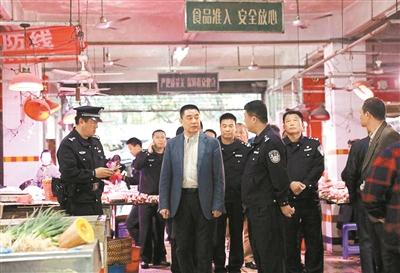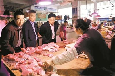龙岗区有关方面负责人检查海吉星市场猪肉档。