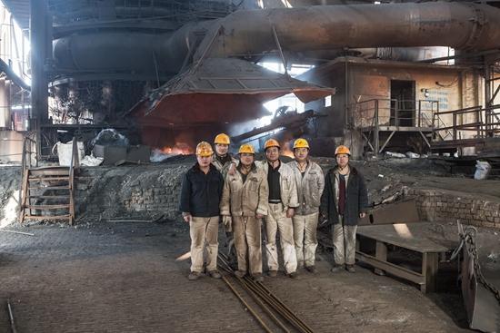 2016年12月27日,济南市历城区,山东球墨铸铁管有限公司,当班工人在高炉车间合影留念。当天,已有60年历史的该企业正式宣布停产。