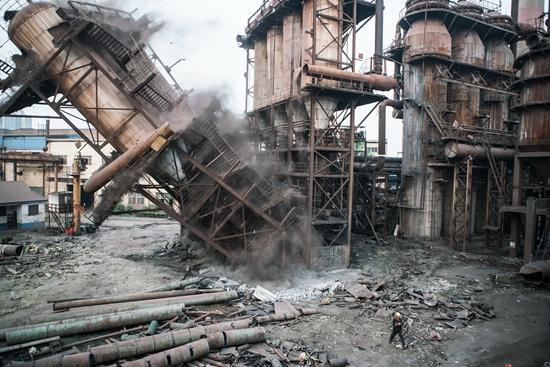 5月1日,位于济南市历城区的山东球墨铸铁管有限公司厂区里,1号高炉配套设备的拆除进入第5天。伴随着巨响,高耸的除尘设备轰然倒地。因污染排放问题,山东球墨铸铁管有限公司于2016年12月27日宣布停产并着手搬迁,数千名工人的生活也随之改变。