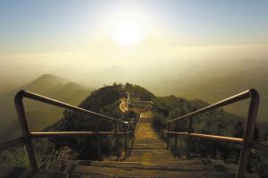 ■从西山山顶观光平台鸟瞰城市,高楼大厦都被薄雾笼罩。