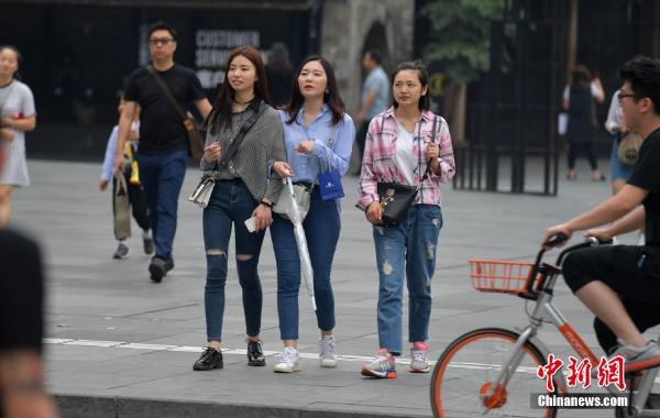 “到成都一定要去春熙路看看,因为在春熙路你能看到很多美女。”5月24日,一场阵雨过后,成都中心城区的春熙路、太古里街头又开始热闹起来。路边的食客和游人边喝茶,边欣赏着路上匆忙行走的美女们。 刘忠俊 摄