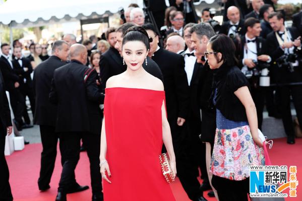 范冰冰一袭红裙出席电影《牡丹花下》戛纳首映礼