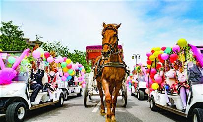 温泉旅游节中的国际花车巡游活动。 □魏业成 摄