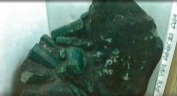 当天,矿工们发现这块本来看起来呈黑色的岩石在灯光下反射出绿光,于是停下了手头的挖掘工作,转而在岩石周边小心挖掘,以免其损坏。