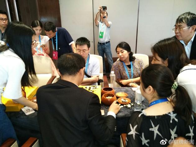 刘菁:一旦进入战斗,5个人对AlphaGo商量着下,犯错可能会少一些。现在柯洁揪着头发长考,习惯性动作,如果直接开劫就很简单,一定在思考二路虎的下法。