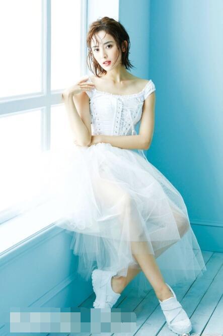 古力娜扎穿上裙子后用一双球鞋做搭配,身上并未佩戴任何饰品,半湿又凌乱的头发营造出另一种清爽美感。