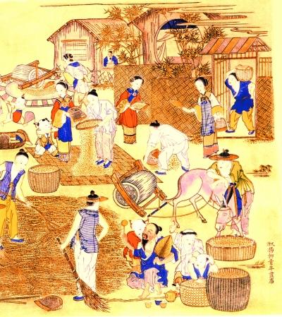 清代天津杨柳青版画中古人农忙的景象(局部)