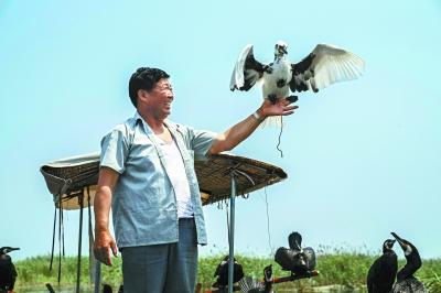 把一只小雏鹰训练成为捕鱼能手,其中的秘密,可能只有养鹰的渔民才掌握。张西华在训练雏鹰时脸上露出灿烂的笑容。