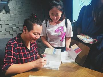 粲然为读者签名。(受访者供图)