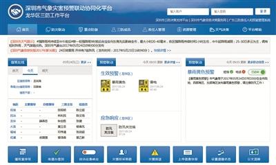 深圳市气象灾害预警联动协同化平台服务各区三防工作。