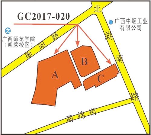 出让公告显示,当天出让的 GC2017-020地块,位于西乡塘区衡阳东路以南、北湖南路以西,由A、B、C 3宗地组成,实际出让总用地面积144.098亩,土地批准用途:城镇住宅、批发零售、住宿餐饮。特定地区有限高要求:沿朝阳溪五栋建筑由南北向往中心分别按100米、85米、75米递减,其余建筑控高在满足日照基础上可建设超高层。