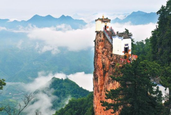 塔云山是驰名秦、鄂、川、豫等地的道教名山,位于商洛镇安县境内,主峰金顶海拔1665.8米,形似宝塔,直耸云端,素有“金顶刺青天,松海云雾间”之美誉。尤其是金顶观音殿,建于塔云山万仞绝顶之上,三面悬于万丈深渊,可谓鬼斧神工,令人叹为观止。2017中国旅游日“秦岭与黄河对话”活动就在这里举办。