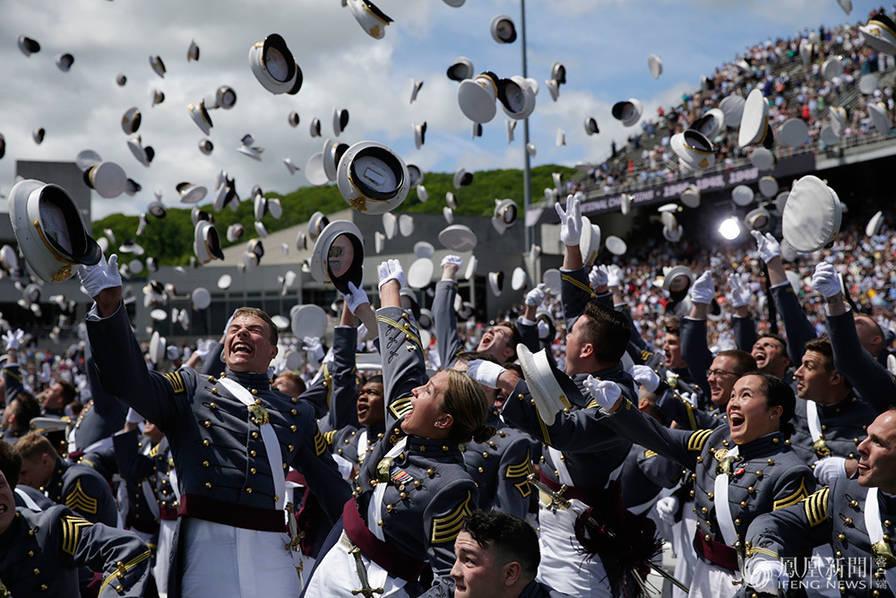 2017年当地时间5月27日,美国著名军事院校西点军校在位于纽约州西点镇的校园体育场举行2017届毕业生的毕业典礼,936名军校学员经过四年学习后毕业,学员们入场参加毕业典礼。西点军校创办于1802年,是美国第一所军事学校。中新社记者 廖攀 摄