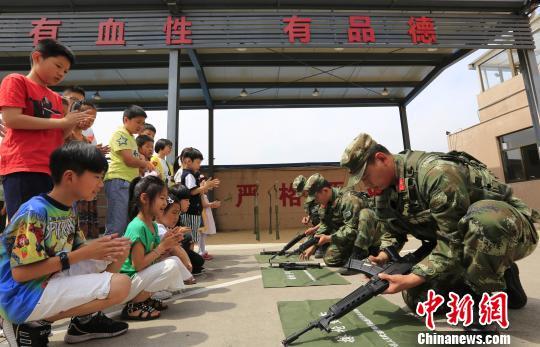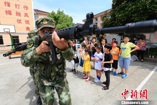 武警官兵们在给孩子们演示武器分解结合。 陈杰(通讯员) 摄