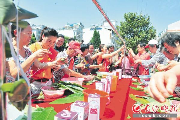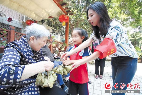 献 爱心 “爹爹娭毑,吃粽子咯!”芙蓉区荷花园街道德政园社区的“粽艺大比拼”欢笑开锣,孩子们学包粽子有板有眼,香甜的粽子更被送到社区内的养老院,让白发居民们感受到别样温暖。 长沙晚报记者 胡媛媛 摄