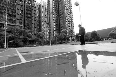 图为居民投诉小区没有老人们使用的健身器材杨涛 摄