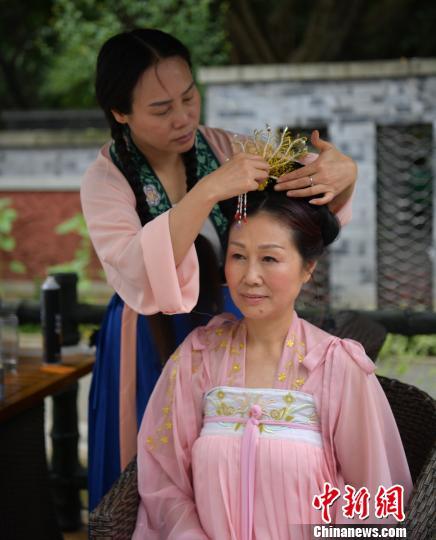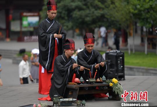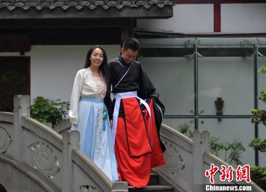 来自成都的游客加入民俗活动,现场进行汉服秀。 刘忠俊 摄