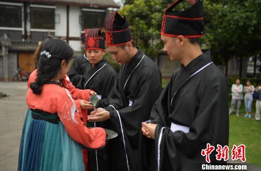 汉服爱好者净手准备举行祭屈原仪式。 刘忠俊 摄