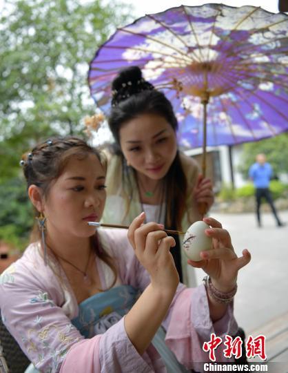 汉服爱好者们现场制作的彩蛋。 刘忠俊 摄