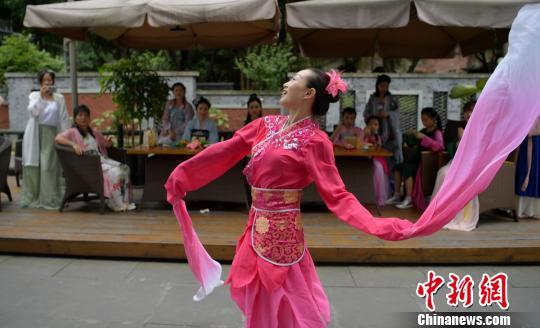 汉服爱好者正在进行汉舞秀。 刘忠俊 摄