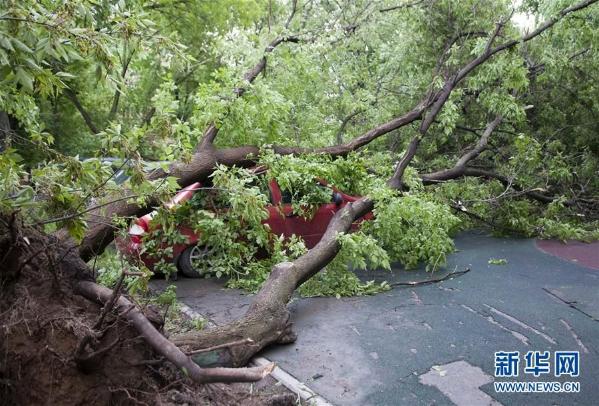 这是5月29日在俄罗斯首都莫斯科拍摄的被风刮倒的树木和受损的汽车。俄罗斯首都莫斯科29日下午突降暴风雨,已造成至少11人死亡、50人受伤。据俄急救部门发布的消息,在莫斯科市区,当天最高风速达每秒23米,多处树木被狂风刮断,部分建筑受损。新华社/路透