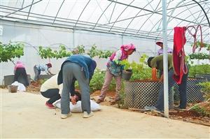 “在这一模式中,村党组织的作用是非常关键的。”华侨庄园农业科技开发有限公司副总经理赵茂香告诉记者,企业虽然是贫困户进入市场的“传动轴”,是农户增收的“稳定器”,但由于企业对农户没有凝聚力,公司曾有过与农户直接合作的失败案例。为此萂村还专门成立了“宾川县天子专业合作社”,并按照田地每亩每年1500元、旱地每亩每年1200元的价格从215户村民(其中有23户建档立卡贫困户)中集中流转200多亩土地与华侨庄园合作,共同打造“阳光玫瑰”葡萄示范基地。