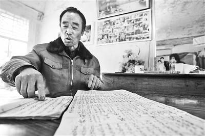 抚宁区董家口村“义乌兵”后裔吴玉久在展示自己的家谱。 姜 涛摄
