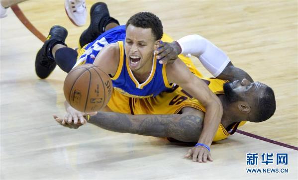 2016-2017赛季NBA联赛即将迎来最高潮,总决赛将于美国时间6月1日揭开战幕,而对战的双方,是球迷们都很熟悉的金州勇士队和克利夫兰骑士队。这两支分别由勒布朗·詹姆斯和斯蒂芬·库里领衔的决赛队伍,已经在过去连续两个赛季中两度联手上演总决赛大戏——勇士队在2015年以4比2战胜骑士队,骑士则在2016年成功复仇,以4比3上演逆转夺冠。那么,球迷们,你们准备好了吗?2017年他们又来了!这是2015年6月9日,骑士队球员詹姆斯(右)和勇士队球员库里(中)在NBA总决赛第三场比赛中倒地争抢。 新华社记者殷博古摄