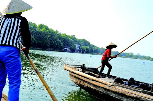 在陆上寻梦后又到水上。芦溪河是信江一条支流,穿越260平方公里的龙虎山,河两岸风光旖旎。2600年前春秋古越人留下的崖壁悬棺,迄今无人能解,成为旷世谜团。如今,则被现代旅游开发巧妙利用,打造成一场震撼人心的“升棺表演”。《寻梦龙虎山》演出中,观众乘夜在芦溪河边登船,从古越民俗村,一路乘船寻到桃花洲附近。