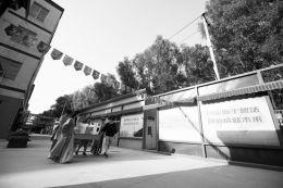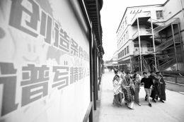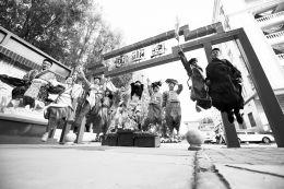 在校园创意街上,小伙伴们抬着排练所需道具一起前行。
